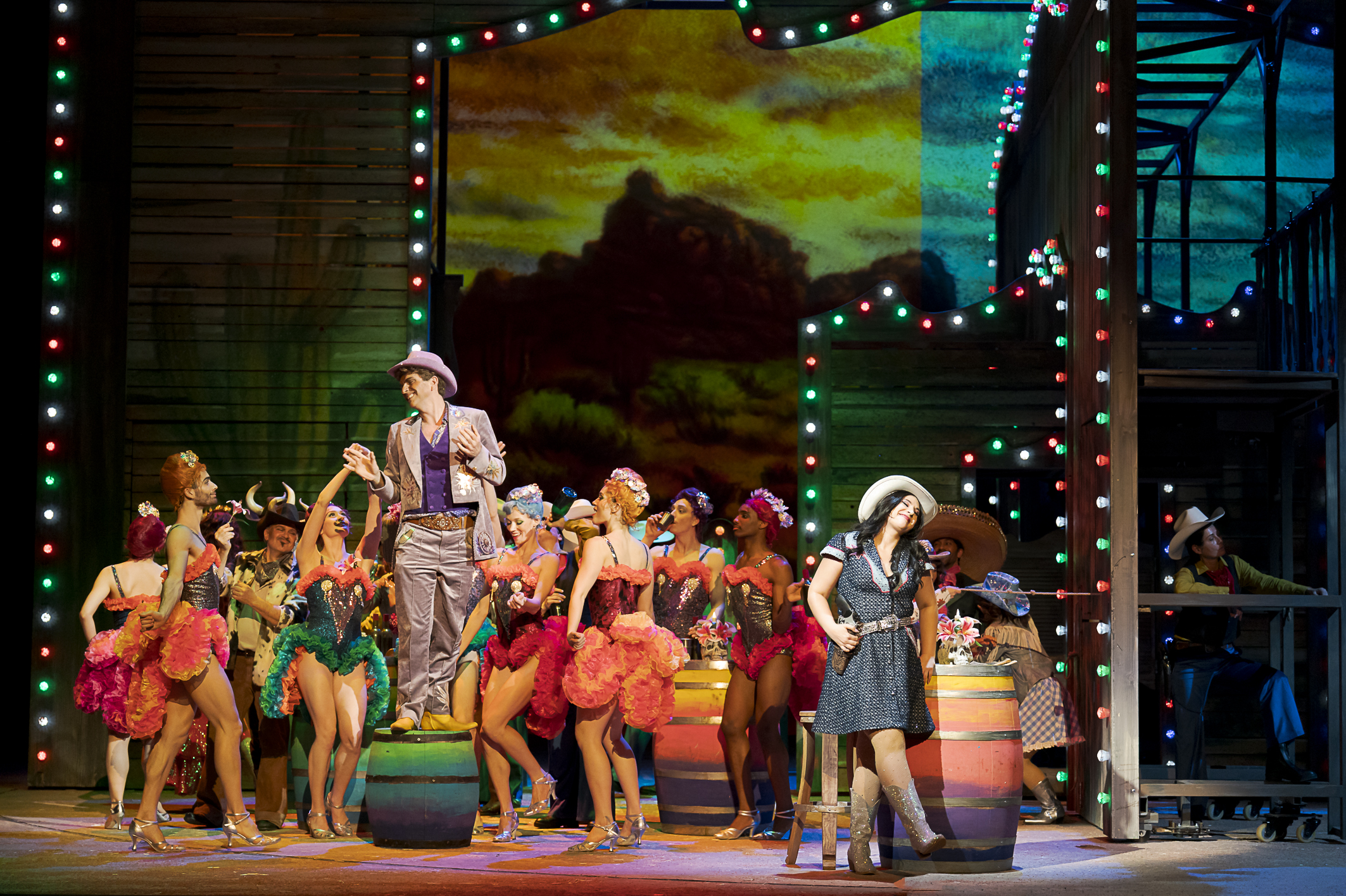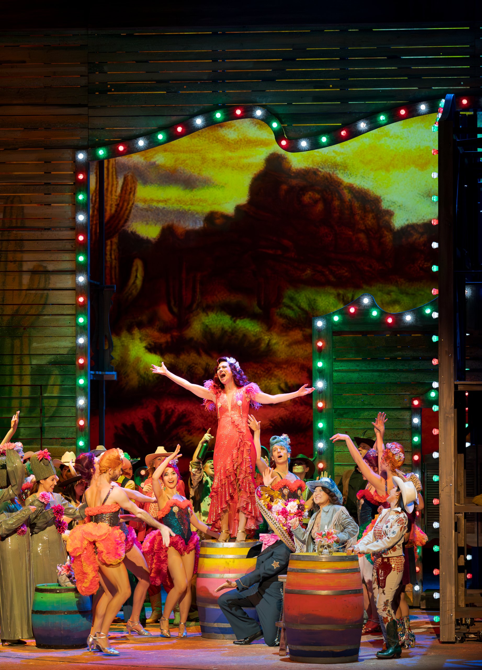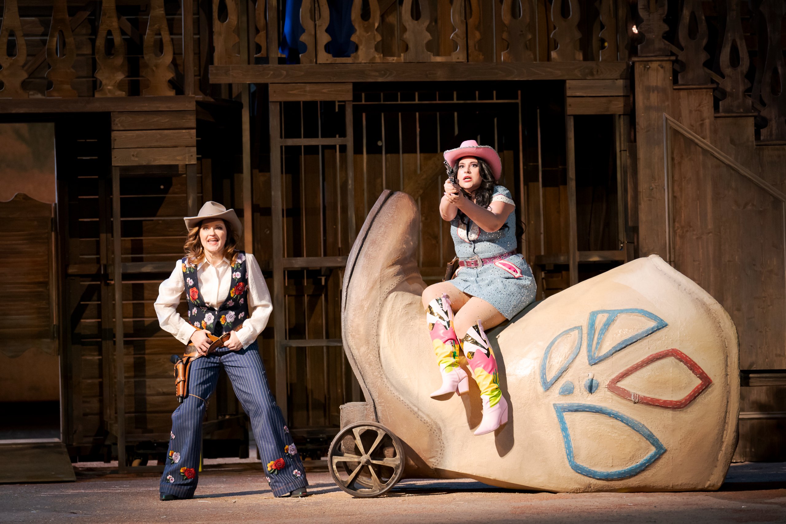 Sondern noch auf einige Details der Inszenierung: Im Grunde genommen hat diese Operette alles, was den Wilden Westen so ausmacht: Cowboys, Sherrifs, attraktive Frauen, Pferderennen, Wüste, spezielle Atmosphäre…Und eben beispielsweise auch die geänderte Darstellung beziehungsweise Definition der Sündenböcke — Die ich auch hier nicht näher erläutern möchte. Denn sonst wissen Sie ja schon alles, bevor Sie sich das Stück anschauen.