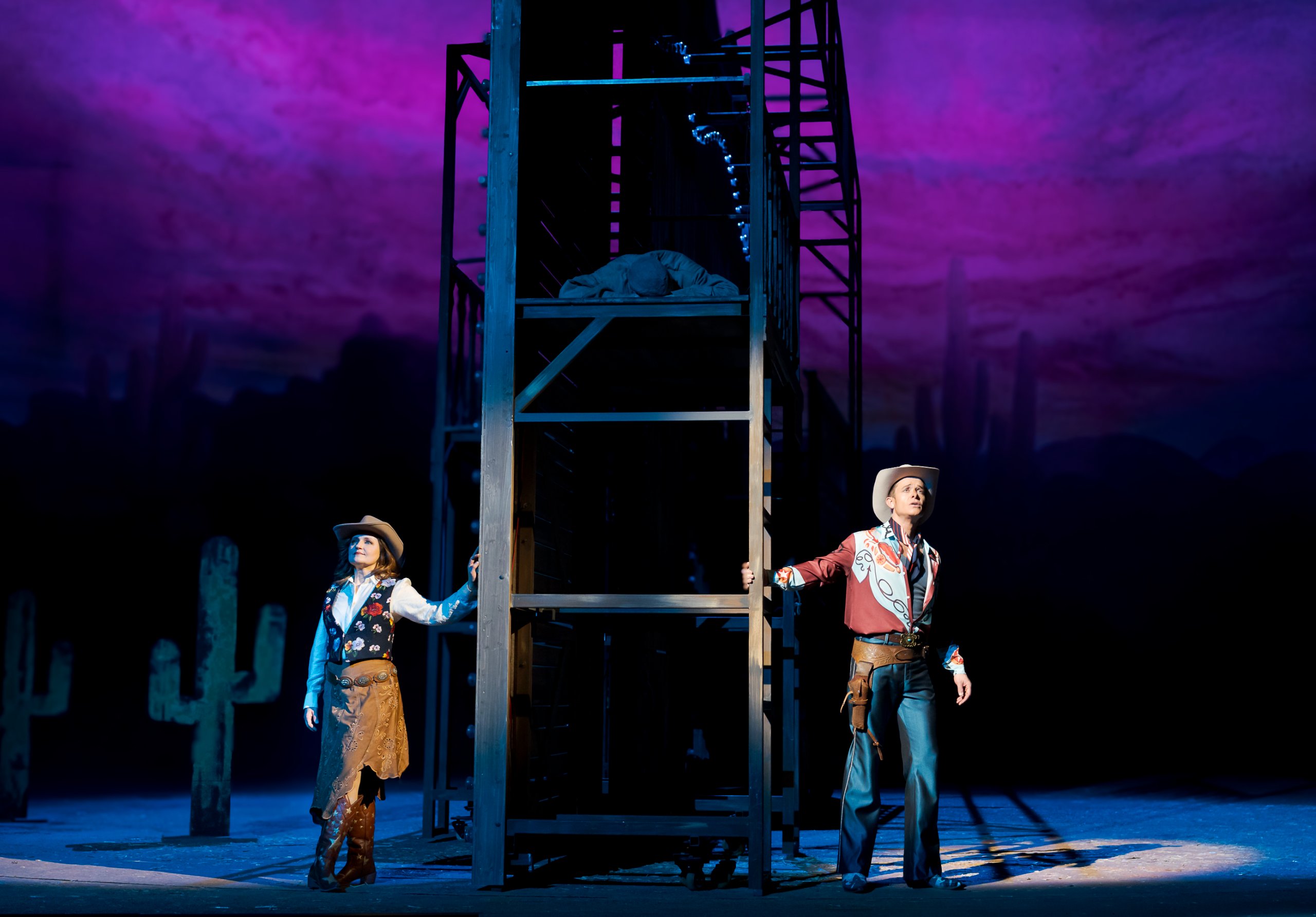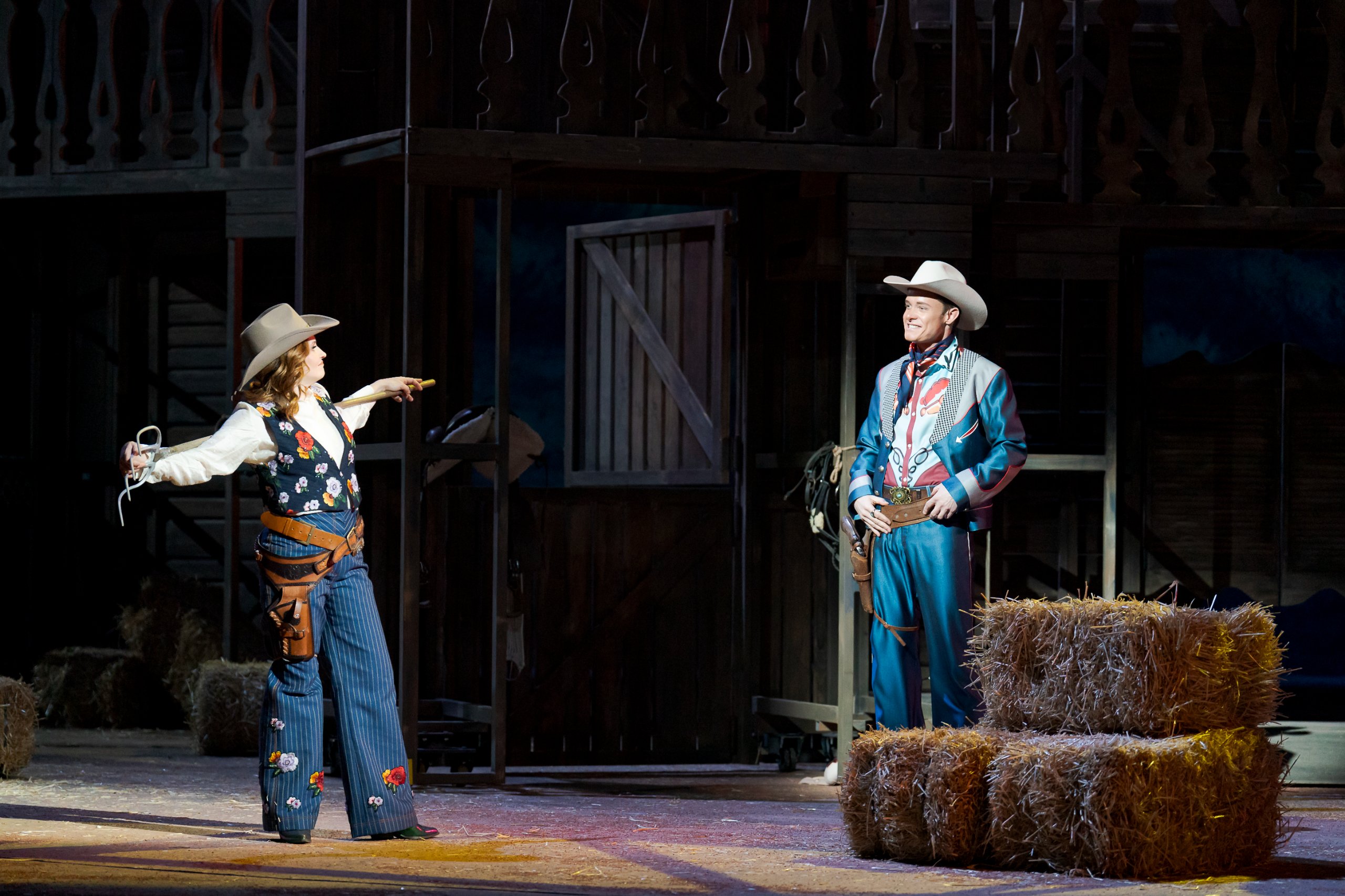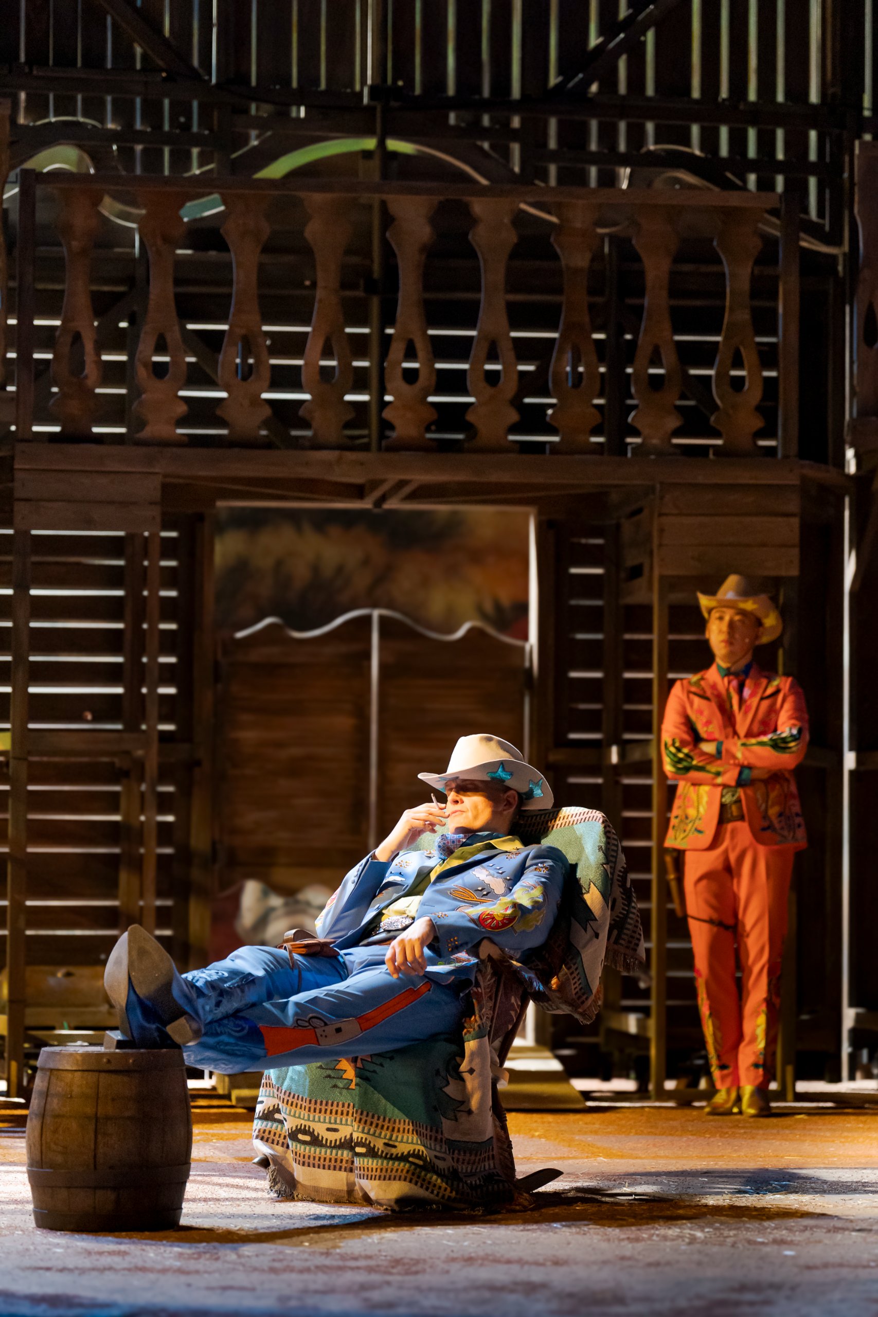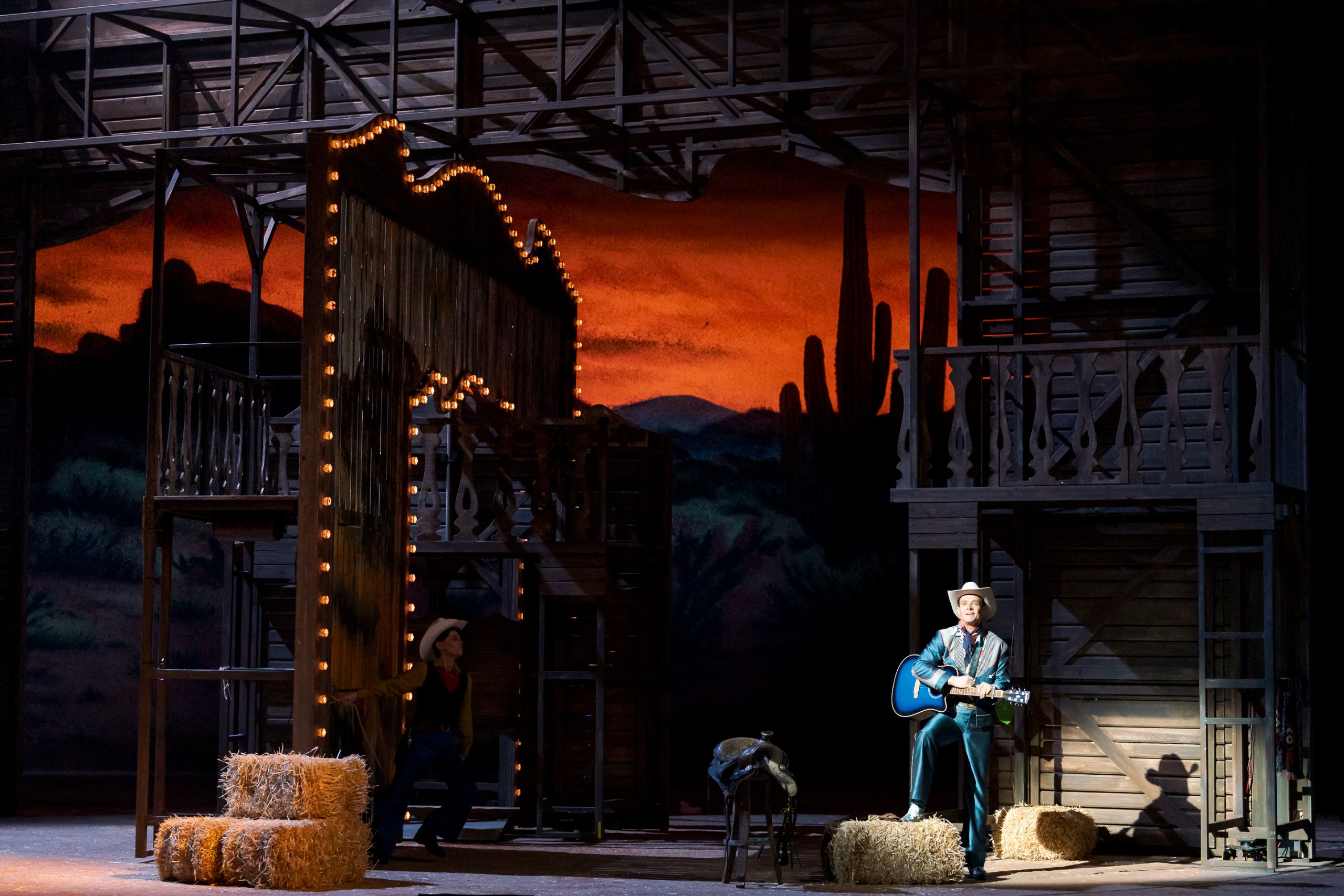 Sondern noch auf einige Details der Inszenierung: Im Grunde genommen hat diese Operette alles, was den Wilden Westen so ausmacht: Cowboys, Sherrifs, attraktive Frauen, Pferderennen, Wüste, spezielle Atmosphäre…Und eben beispielsweise auch die geänderte Darstellung beziehungsweise Definition der Sündenböcke — Die ich auch hier nicht näher erläutern möchte. Denn sonst wissen Sie ja schon alles, bevor Sie sich das Stück anschauen.