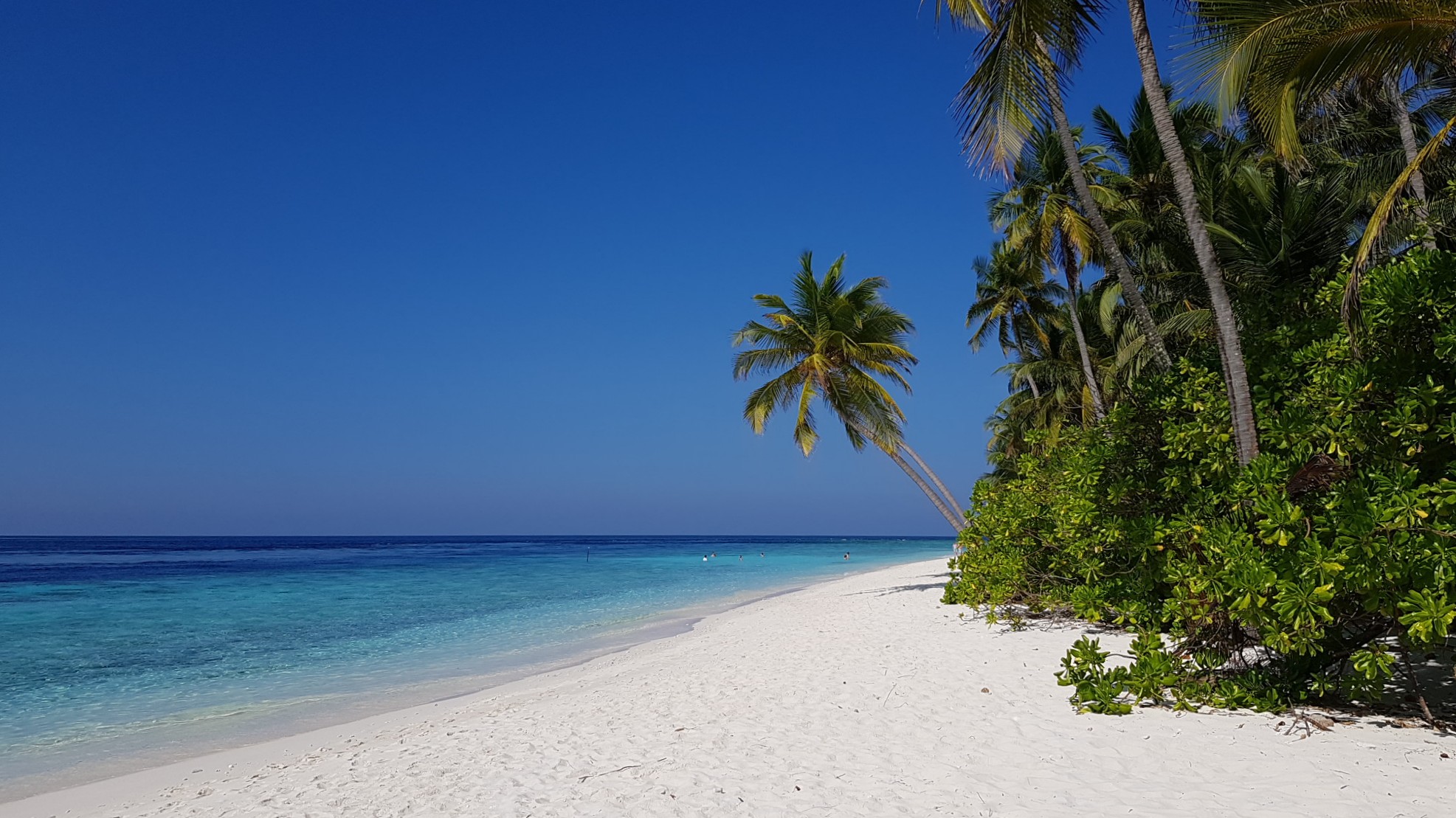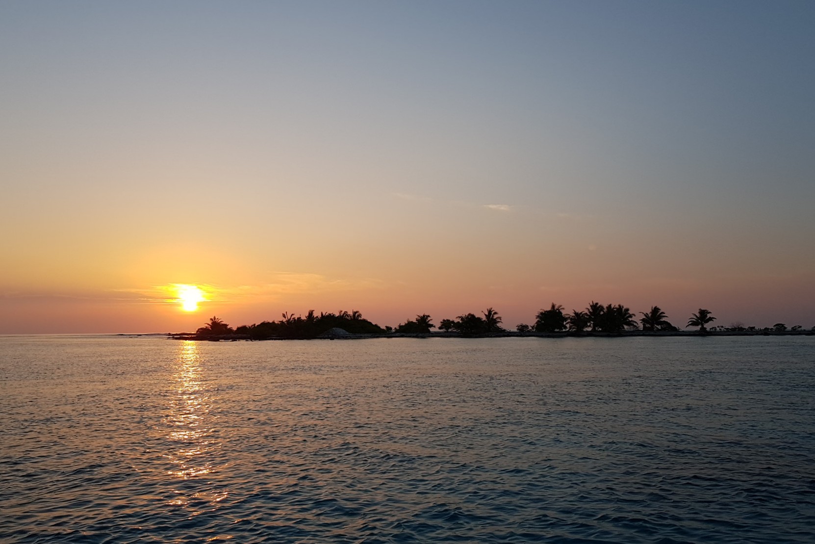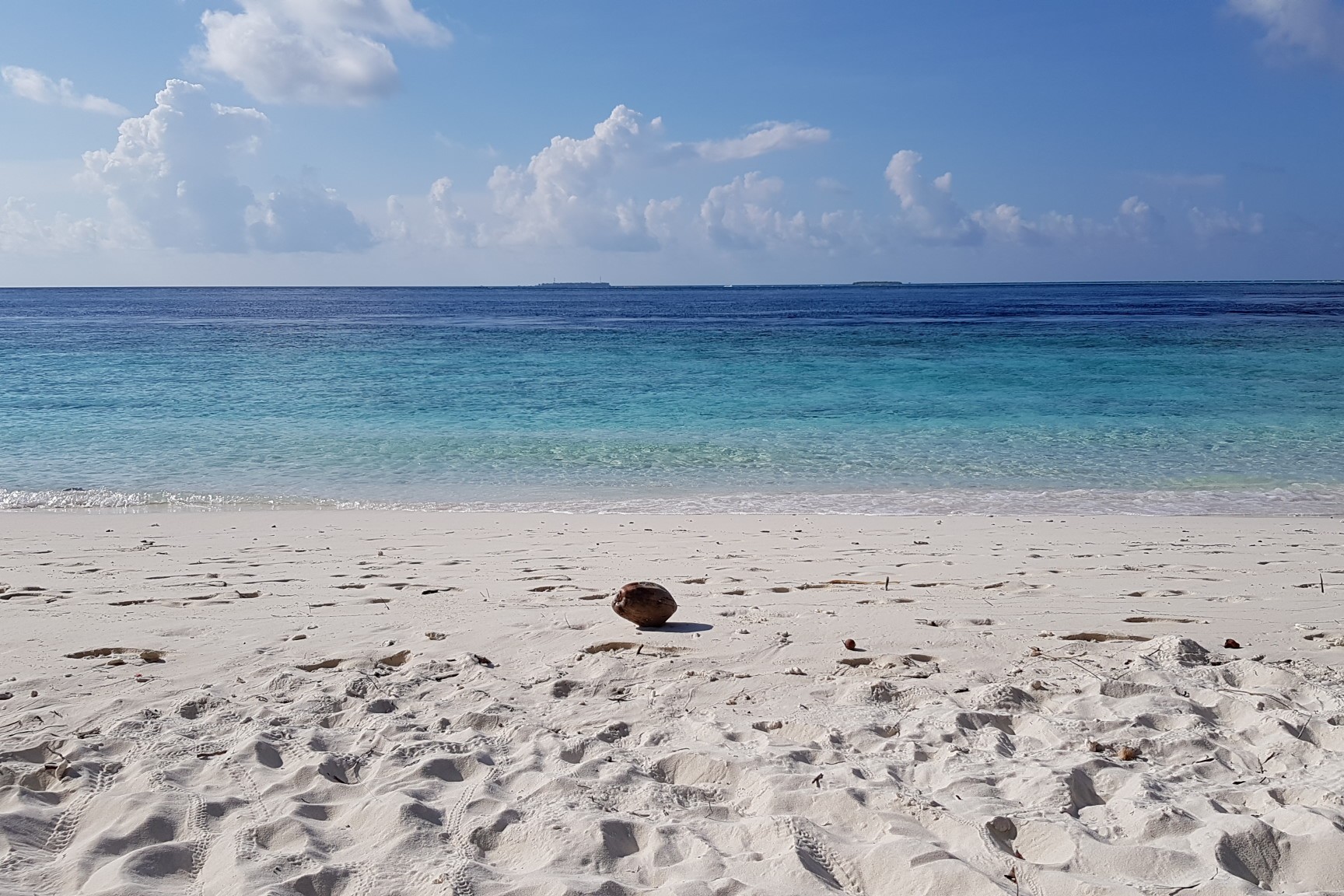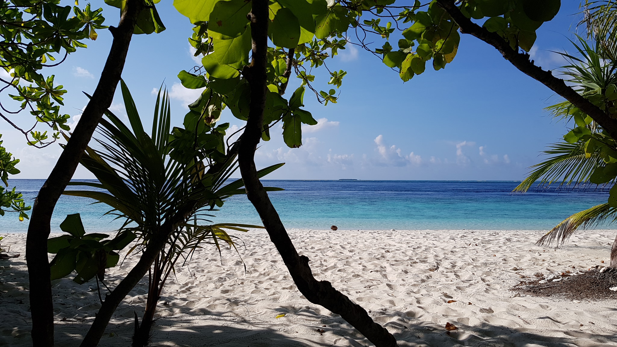 Die Sandinsel ist Robinson like klein und zu Fuß, natürlich barfuß, moderat in 25 Minuten zu umrunden.